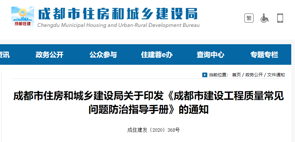 成都印发《建设工程质量常见问题防治指导手册》!建议收藏