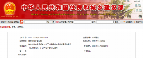 住房和城乡建设部就《关于加强县城绿色低碳建设的通知(征求意见稿)》公开征求意见的通知
