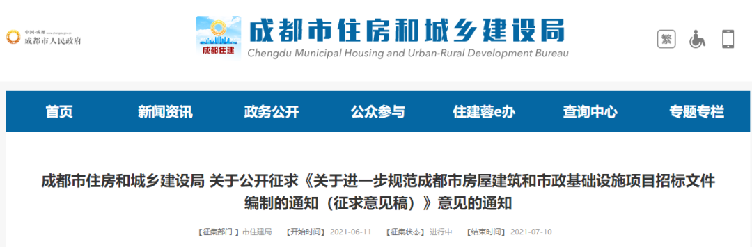 近日,成都市住建局公开征求《关于进一步规范成都市房屋建筑和市政基础设施项目招标文件编制的通知(征求意见稿)》意见。 公开征求意见起止时间:2021年6月11日至7月10日 1、资质类别应与招标工程内容相对应