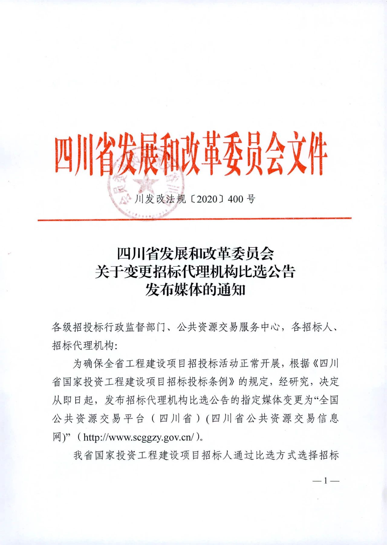 精匠 | 资讯·四川发改委《关于变更招标代理机构比选公告发布媒体的通知》