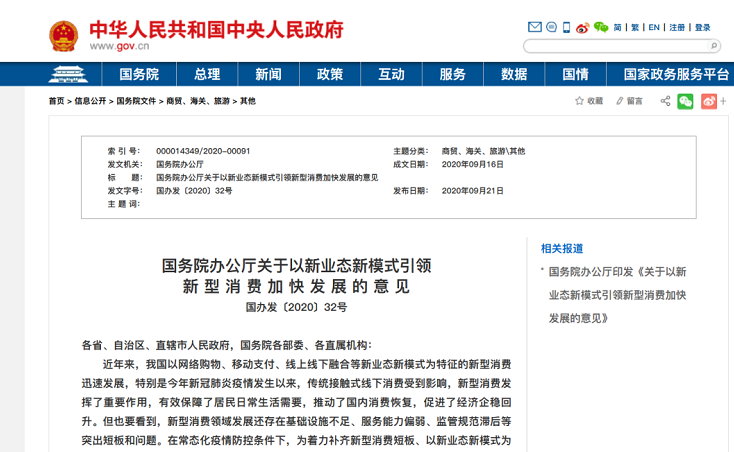 精匠 | 资讯·国务院办公厅日前印发《关于以新业态新模式引领新型消费加快发展的意见》发布日期:(2020/9/25) 点击次数:391 |